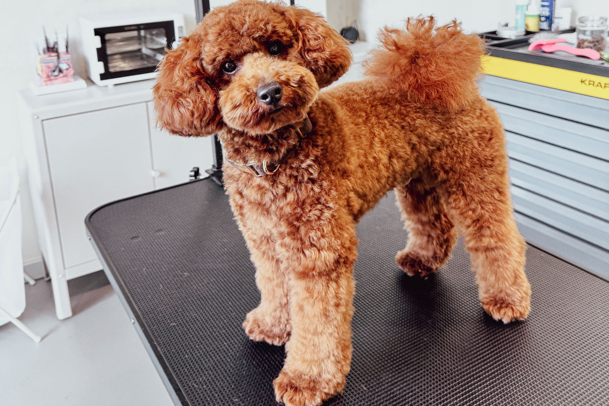 Leandro — our tiniest team member and self-appointed Chief Happiness Officer — takes his duties very seriously: greeting guests, testing every cosy blanket, and ensuring the treat jar is always up to standard. This charming red toy poodle inspires everything we do at Bark & Beauty, reminding us that every day is better with wagging tails, gentle hearts, and a touch of fluff. 🐾💛